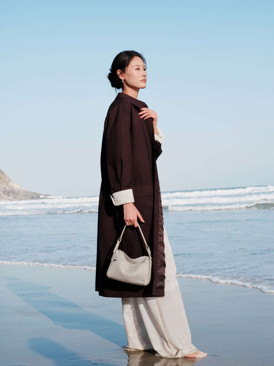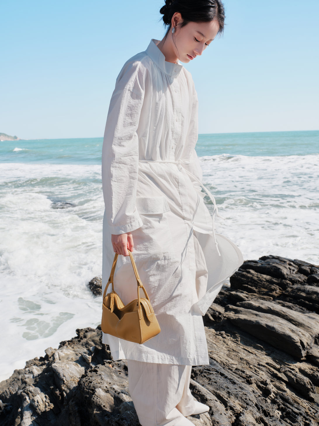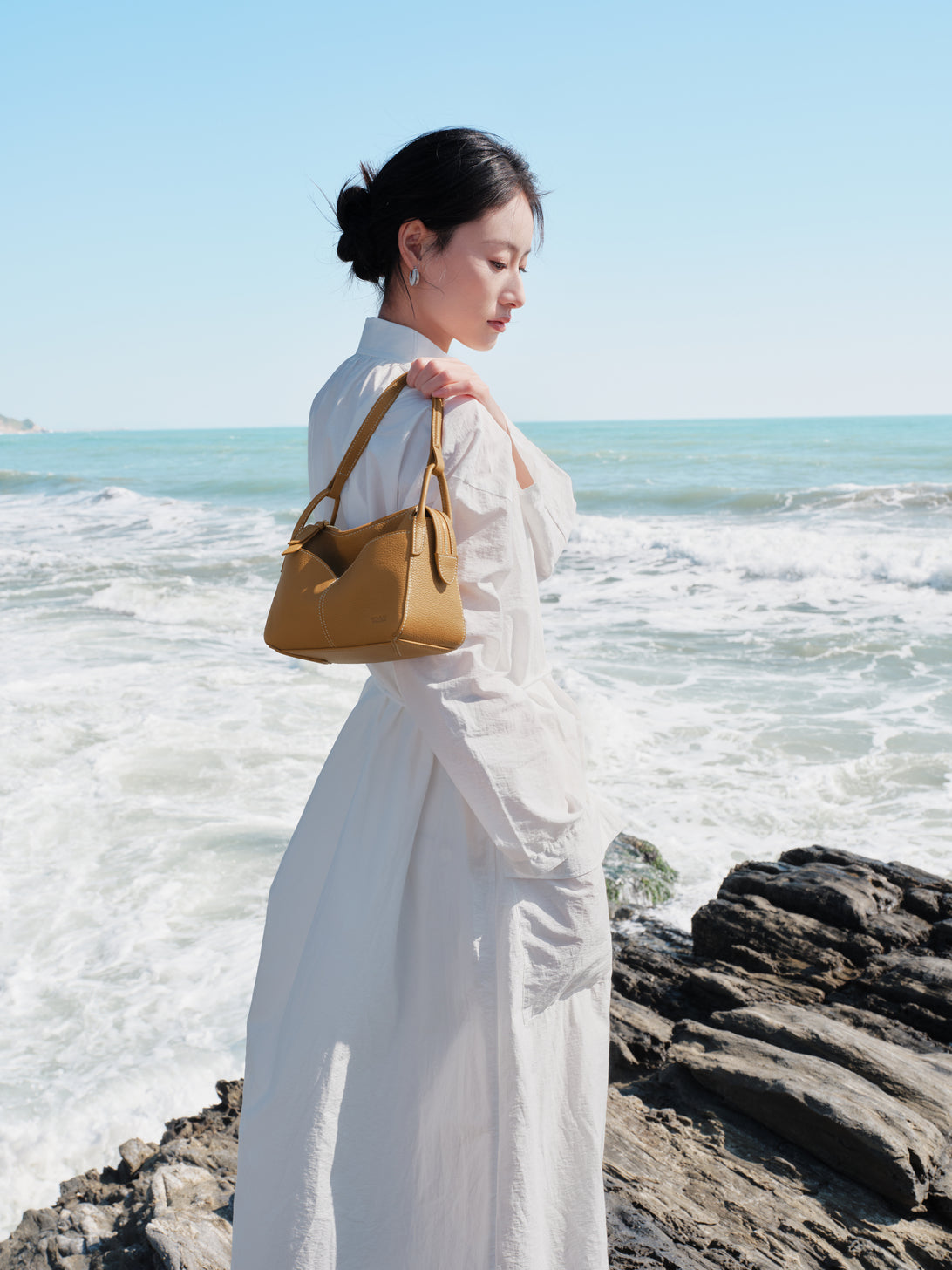 Inspired by the elegant drape of the traditional Chinese Xiapei (ceremonial cape), theFreeform Casual Mini Boston Bag celebrates fluidity and soft structure. Its curved front pocket and defined triangular base are modern nods to heritage, crafted into a form that moves and molds with you.