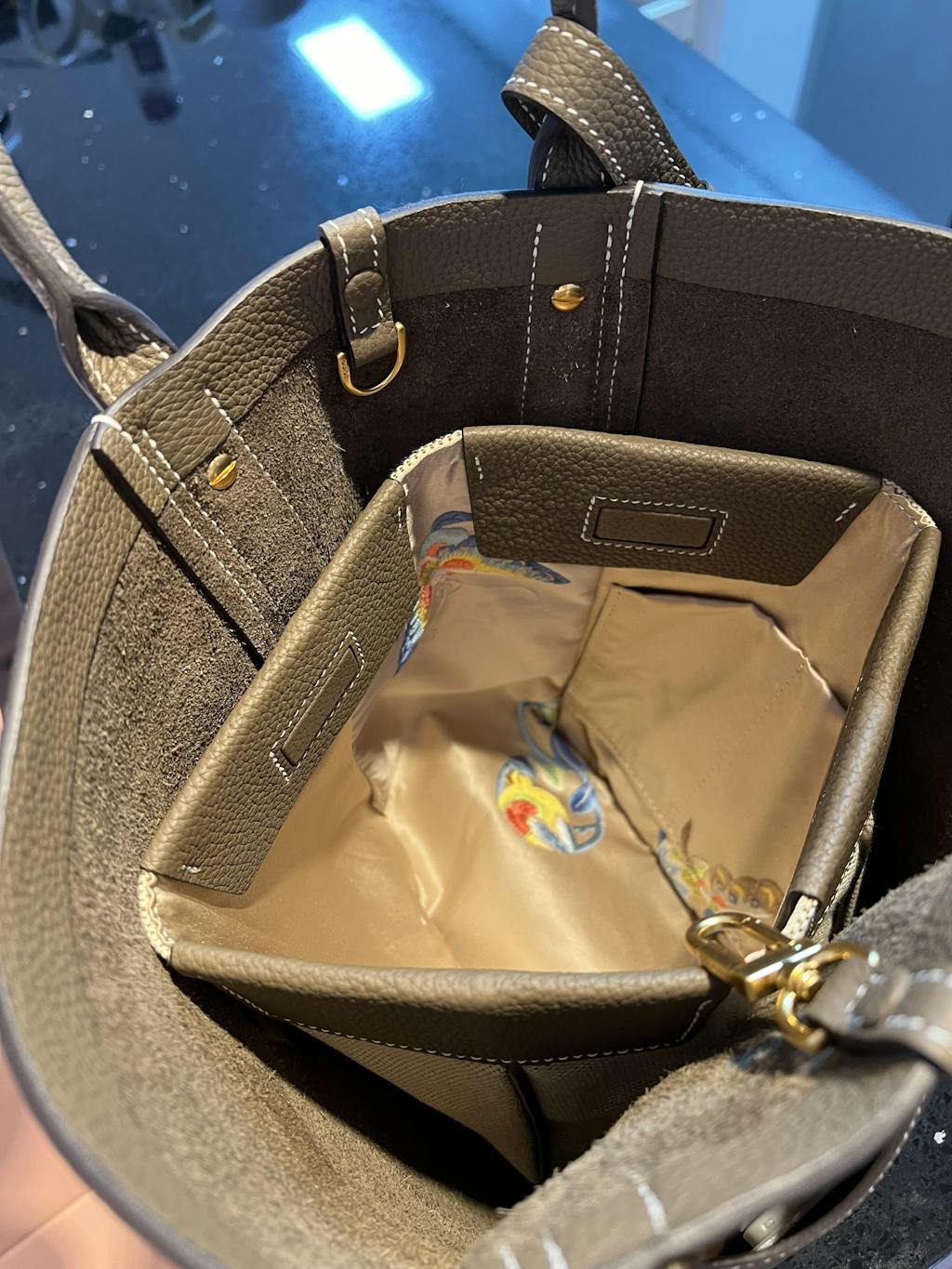 • - Avoid damaging the interior of the bag with liquid cream, hand sanitizers, makeup, and perfumes